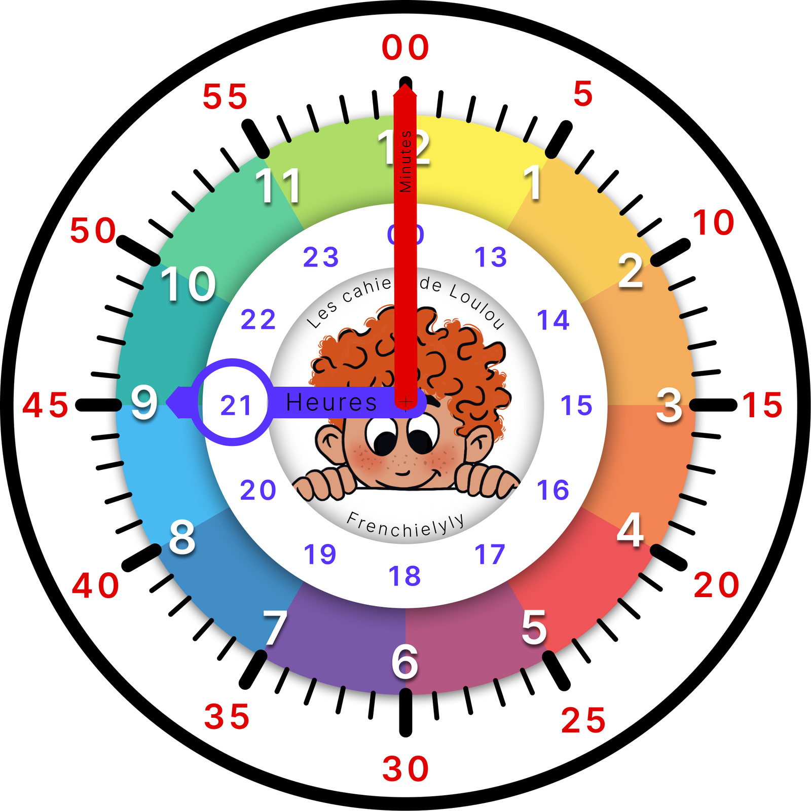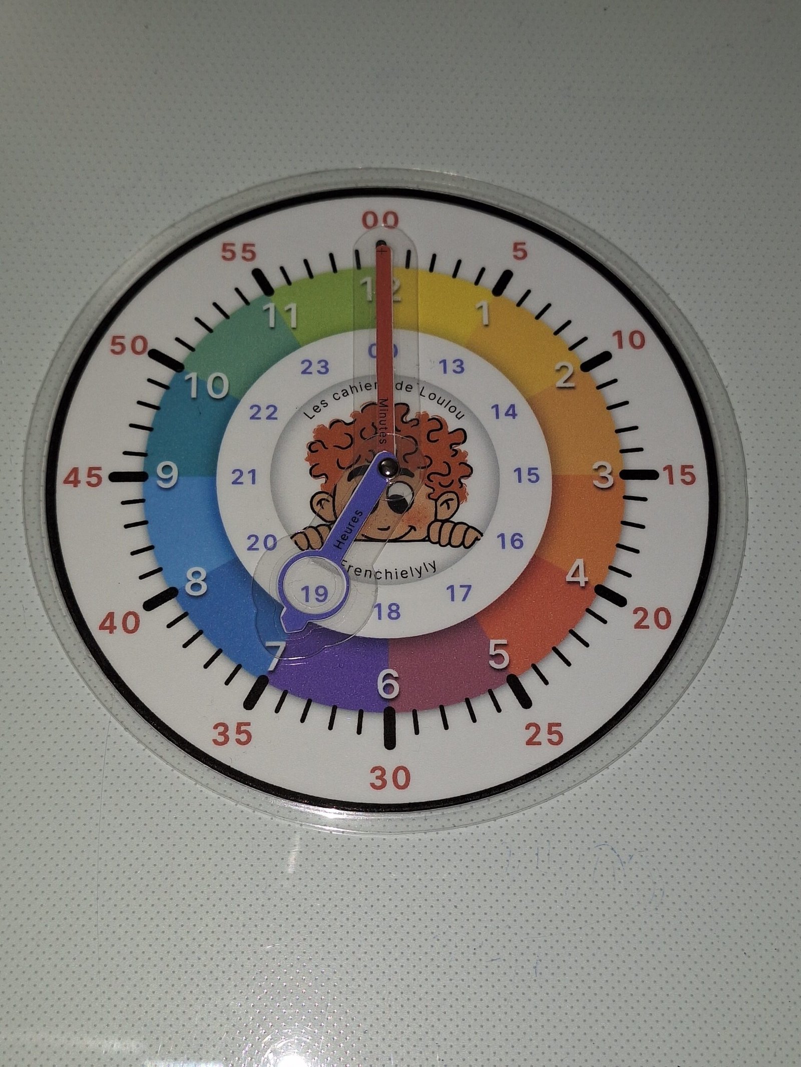 Une horloge pédagogique permet à Loulou de lire l’heure comme un grand avec un petit coup de pouce visuel. L’horloge affiche les heures du matin, de l’après midi ainsi que des minutes pour faciliter la lecture.
